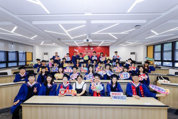 六月细雨,如丝如缕,悄然润泽着丽娃河畔的惜别深情;梧桐叶上晶莹的雨珠,折射出学院领导与导师们对毕业学子的殷切嘱托与深深期许。文史楼前、小教楼里,毕业生们身着学位服,头戴学位帽,与导师及辅导员们一起拍摄年级大合影、班级大合影和优秀毕业生合影,将这一融合纪念、荣耀与圆满的璀璨时刻永远定格。当那声“我们毕业了”穿云裂雨、响彻天际,不仅宣告一段学术旅程的圆满,也昭示着肩负理想、走向未来的铿锵誓言。