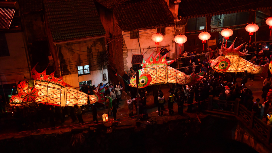安徽歙县汪满田村的“嬉鱼灯”已传承600多年。新华社图