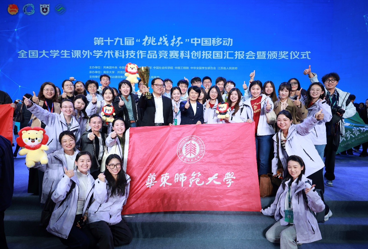 华东师大在赛事中斩获多项佳绩,主体赛收获特等奖1项、一等奖2项、二等奖1项、三等奖2项;2025年度中国青年科技创新“揭榜挂帅”擂台赛特等奖1项、二等奖1项;2024年度“揭榜挂帅”专项赛特等奖2项(“擂主”1项)、一等奖3项、二等奖1项、三等奖1项,成功蝉联国赛“优胜杯”。