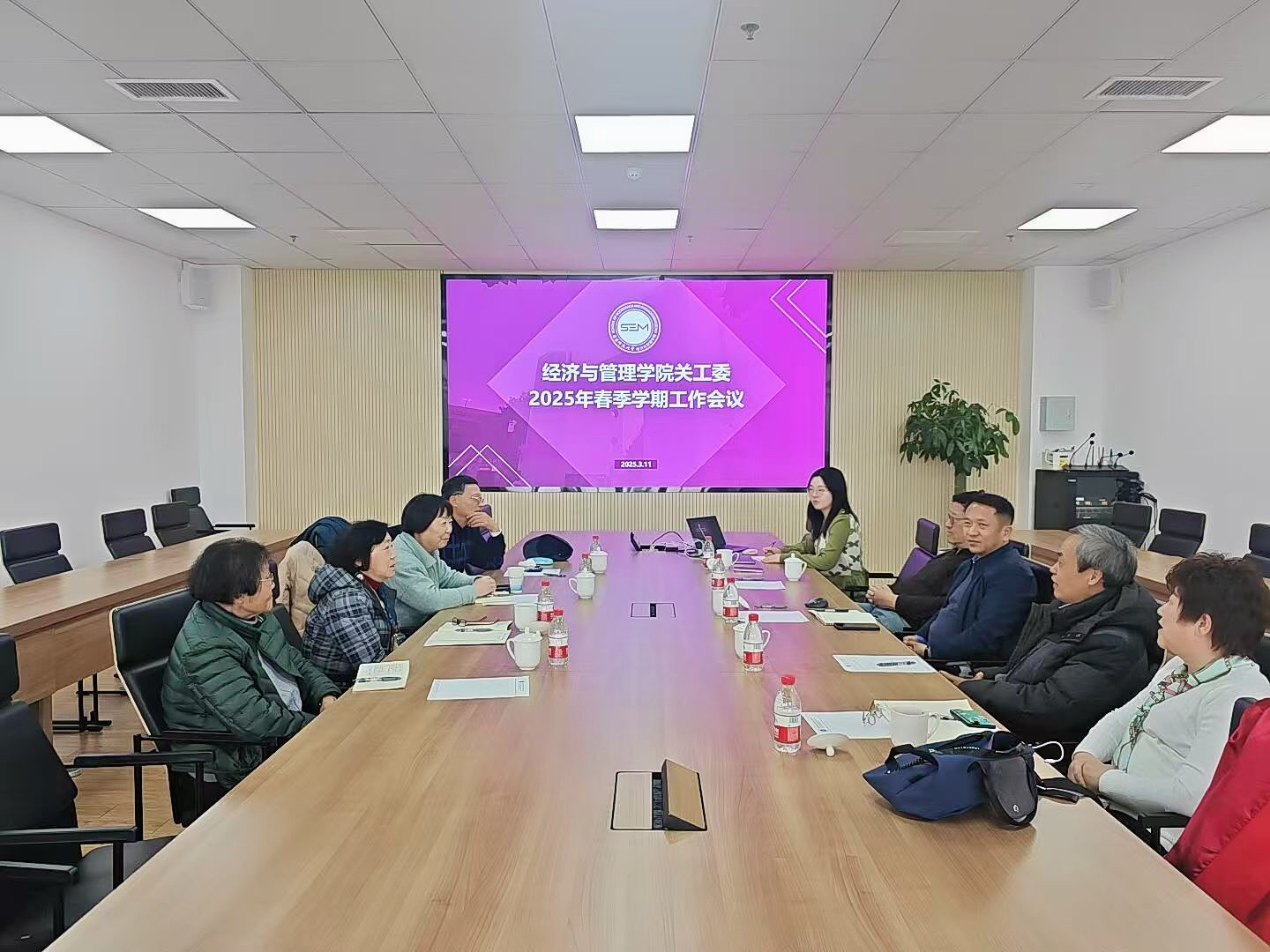2025年3月11日,bat365在线体育登录关工委在普陀校区理科大楼召开春季学期工作会议。bat365在线体育登录党委副书记、关工委主任吴文钰,学院关工委副主任徐丽华,学院关工委委员薛跃、孙厚琴、陈承明、顾志敏、华俊、吴信如出席。会议由学院关工委秘书长王旭主持。