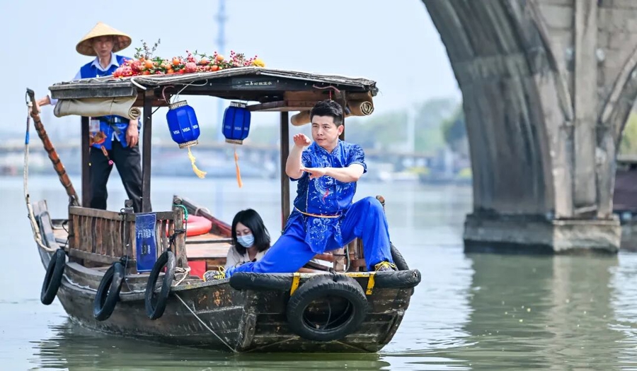 江南第一茶楼的改变,是朱家角“中国古镇入境游第一站”品牌持续打响的缩影。如今,到朱家角古镇换上汉服泛舟、体验非遗船拳,已成为很多外籍游客的热门选择。