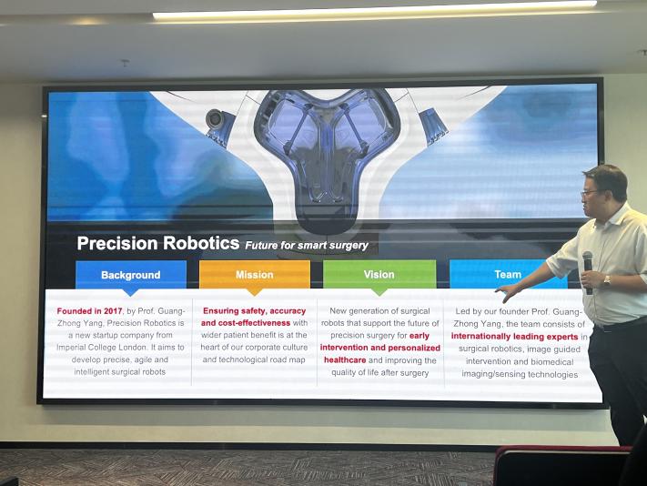 高管们分享了商汤的发展历程、技术创新以及对未来智能世界的展望,让同学们对人工智能的商业应用和发展潜力有了更加深刻的认识。此外,华东师大经管学院师生还与一家医疗机器人企业的创始人Dr Benny Lo进行了富有启发性的对话,创始人详细介绍了他们如何将机器人技术应用于医疗领域,提高手术的精确度和效率,改善患者的治疗效果。