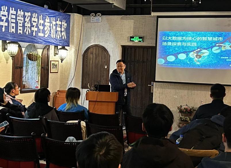 紧接着,华东大区咨询部副部长陈俊老师分享了以大数据为核心的智慧城市产品应用实例,让同学们深入了解企业管理实践和东软的研发成果。