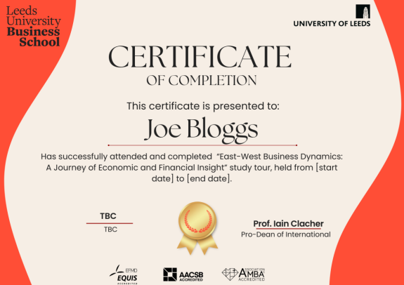此次利兹寒假访学项目是为经管学院在读学生专属定制的培训项目,所有全程参与访学项目、顺利完成学术课程与企业参访活动的学生将获得由利兹大学商学院颁发的课程证书(Certificate of Completion)。