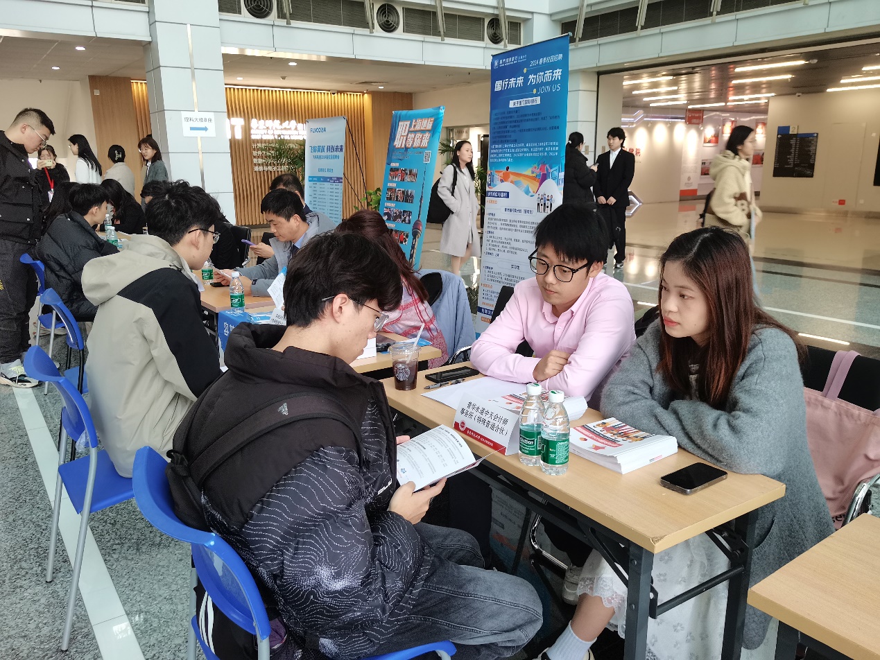 与春天撞个满怀,和你共话未来。3月20日下午,bat365在线体育登录2024年春季招聘会在普陀校区理科大楼拉开帷幕。本次招聘会邀请到了19家知名企业,包括银行、券商、会计师事务所等重点企业进校招揽人才,提供了53个工作岗位和500多个用人需求,吸引了相关专业百余位同学前来参与。