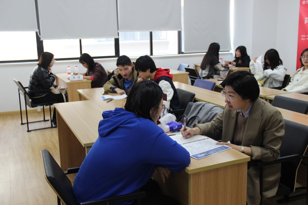 本次招聘会还特别设置了“简历指导站”,“一对一”生涯指导活动同步在理科大楼A326教室展开。学院邀请了华东师范大学学生职业发展中心生涯指导部主管李铮、前程无忧人才发展研究院人才测评高级顾问刘斯亮、猎聘网简历优化顾问俞亚莉和前程无忧、拉勾网职场导师张小曼,结合同学们的个人背景与目标职业给予个性化的优化建议与专业化的生涯规划。同学们表示,通过这次招聘会和简历指导活动,更明确了未来的职业目标和规划路径,增强了求职过程中的信心。