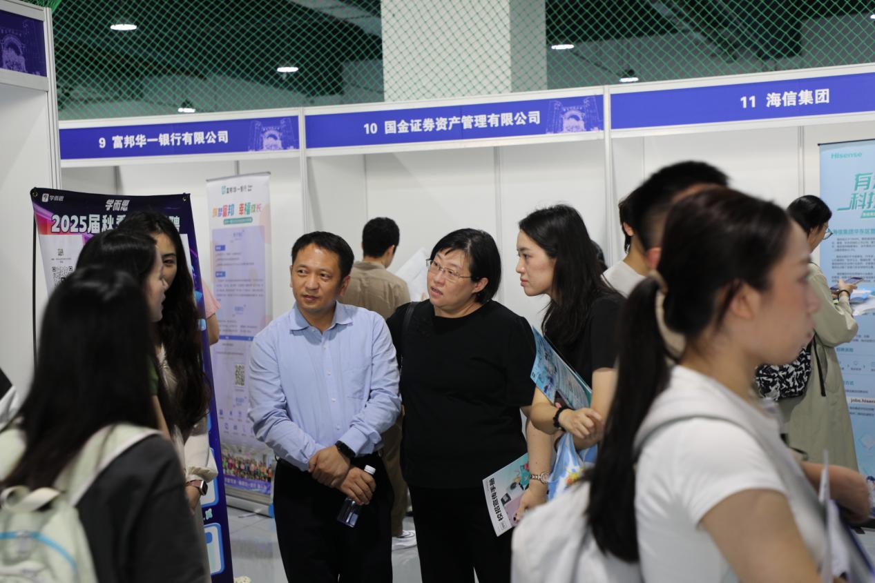 招聘会现场气氛热烈,各招聘单位展位前吸引大量学生驻足交流。企业招聘负责人与同学们一对一交流,就岗位需求、能力匹配等方面答疑解惑,加深双方了解。