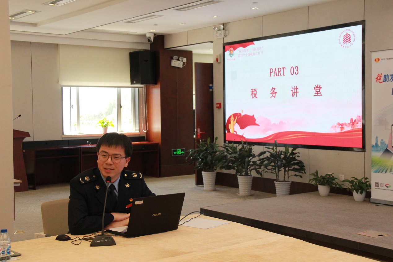 与此同时,虹口区税务局各部门负责人为同学们带来精彩的税务讲堂。风险管理局局长马桂杰从什么是税收管理,税收风险管理的目的与意义,税收风险管理的发展历程,税收风险管理的基本流程等四个方面讲解了大数据税收风险管理的要义。个人所得税科科长周敏嫣通过案例分析,详细讲述了个人所得税的发展路程,提到了个人所得税与同学们的日常生活息息相关。第四税务所杨阳分享了自己从事税收工作的经历,他以自身的例子告诉同学们要不忘初心,在困难中坚守毅力,并鼓励同学们积极报考税务系统公务员岗位。