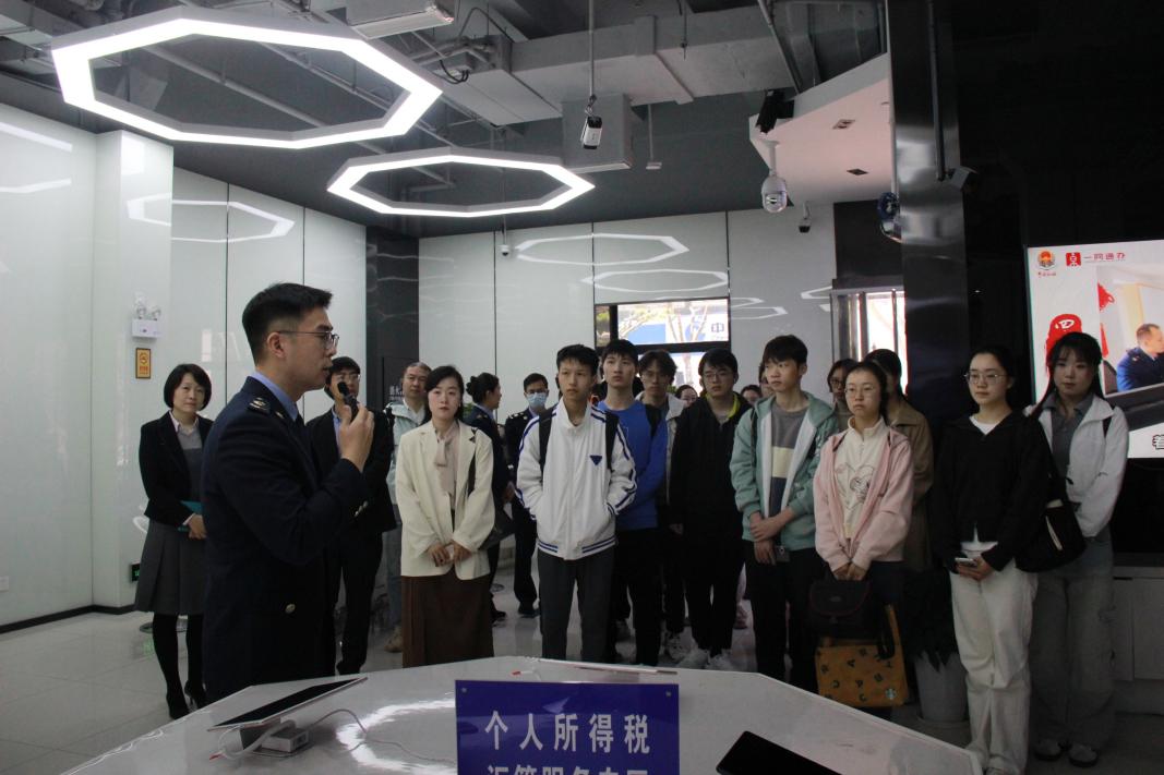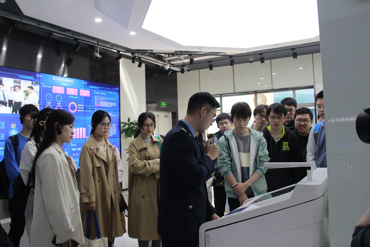 活动开始,虹口区税务局工作人员带领我校师生参观了税务局办税大厅和智慧办税服务厅,并详细介绍了窗口服务流程以及智能咨询、虚拟体验、数据展示、自助办税等智慧办税功能。让同学们现场体验了智能咨询、远程视频等一系列智能化办税应用,使大家切身感受到数字化办税服务带来的便利。