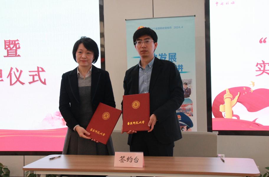 会上,华东师范大学经济与管理院与国家税务总局上海市虹口区税务局签订了税校合作协议,并共同揭牌实践育人基地。