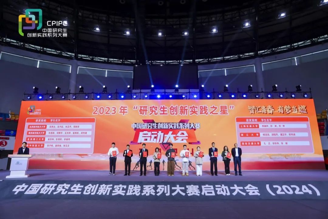 4月12日,中国研究生创新实践系列大赛2023年最高荣誉奖——“研究生创新实践之星”在大赛2024年启动大会上正式公布,中国学位与研究生教育学会会长杨卫院士、武汉市委组织部部长杨玲为15支获奖团队代表颁发奖杯和奖状。