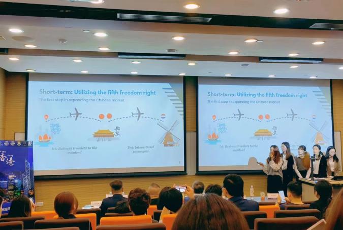 继在2023年全国高校商业精英挑战赛创新创业竞赛创业模拟赛道全国总决赛第一阶段取得全国一等奖、并于第二阶段(精英赛)取得全国第六的好成绩后,由姚占雷老师指导,学生徐萌、李弈、王锦仪、王梓萌、农馥蔚组成的“啊对对队”作为大陆地区优胜队,入围并受邀代表华东师范大学参与2024年海峡两岸与港澳地区企业经营案例分析大赛,并于香港大学进行交流访学。