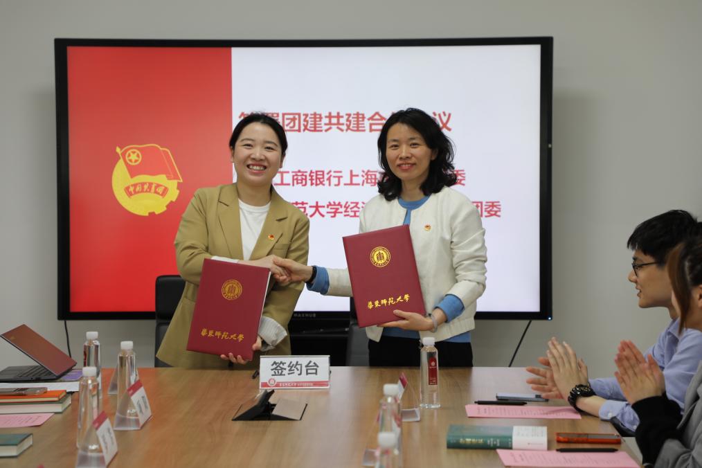 bat365在线体育登录团委书记林悦与中国工商银行上海市分行团委书记谢璐芸共同签署了团建共建合作协议,双方将加强沟通,实现资源共享、优势互补,为经管学子拓展实践平台。